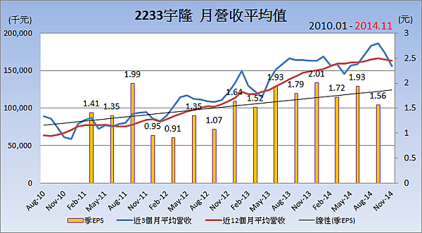 ◆ 2233宇隆_2014年10月營收1.44億、年減12.98%
