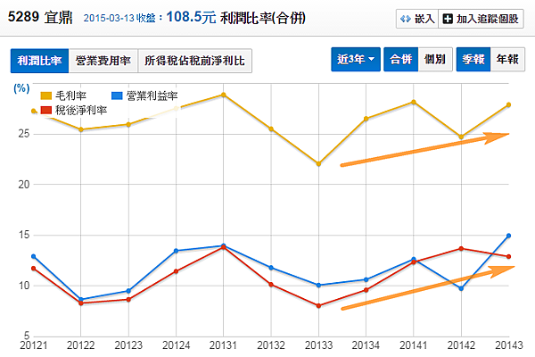 宜鼎在2013年11月上櫃,在上櫃之後,營收、營益率、每股稅後盈餘仍保持成長(不簡單)
