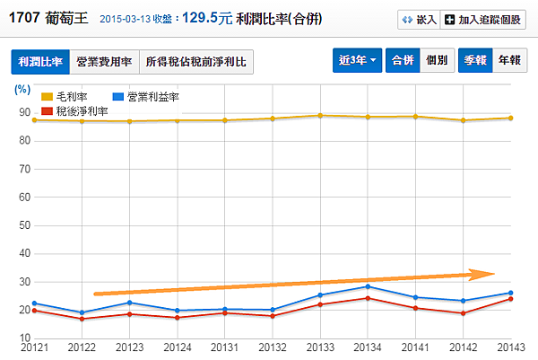 葡萄王的毛利率將近90%,營益率有25~30%,基本上當葡眾的員工比較有賺頭。