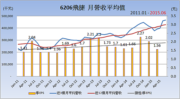 • 6206飛捷_2015年6月營收4.65億、年增13.93%